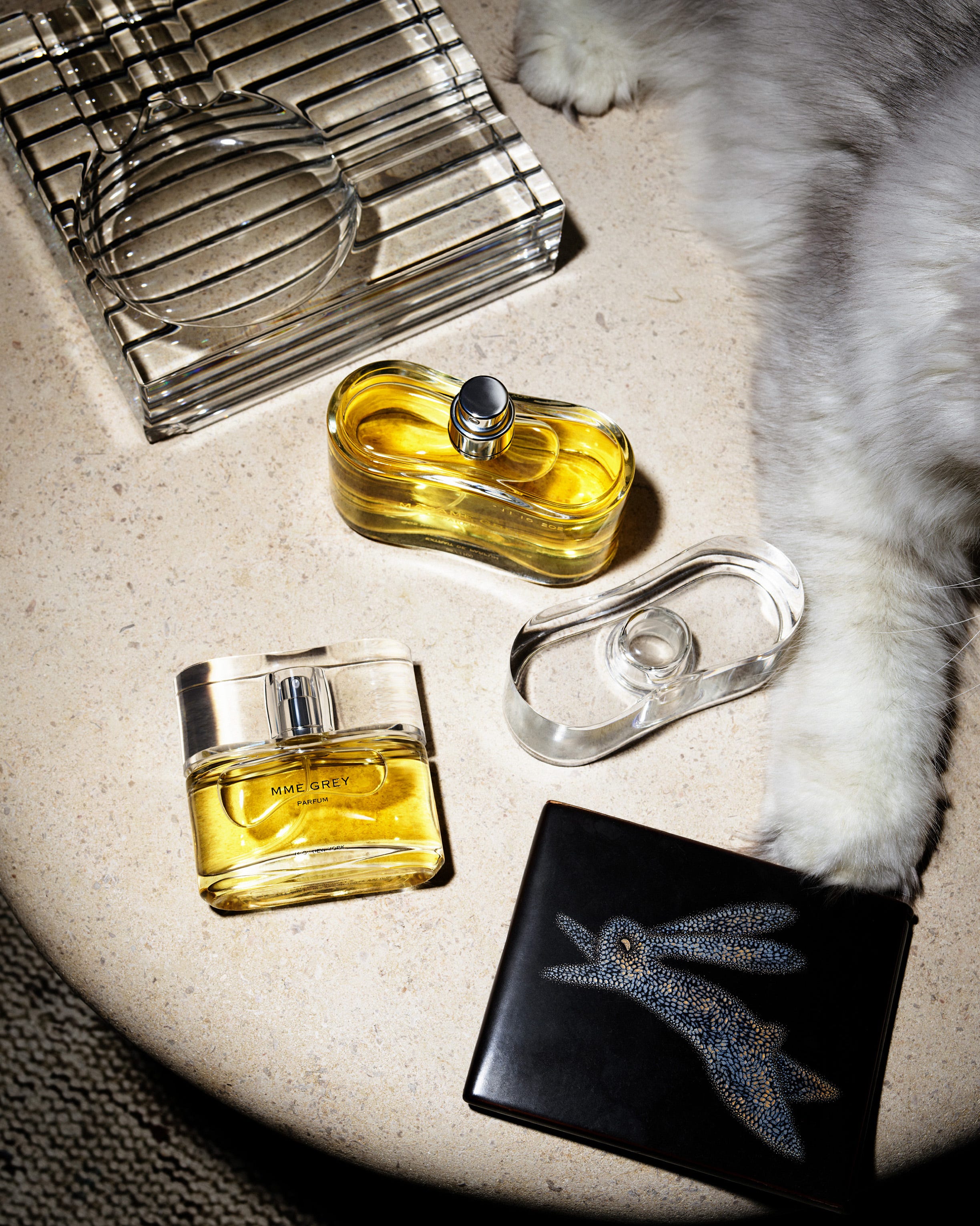 To introduce the limited-edition Madame Grey extrait de parfum, the Estate partnered with Manhattan’s FD Gallery on a sale of exquisite jewelry and decorative objects, each with a storied history. The 19 works were documented by the photographer Ben Hassett for the first volume of the Madame Grey Estate Catalogues, a biannual series of curated collections that take shape in print. Madame Grey was born from a reverence for estate catalogues: tangible proof of a life well lived, bound in a book of treasured possessions left behind.