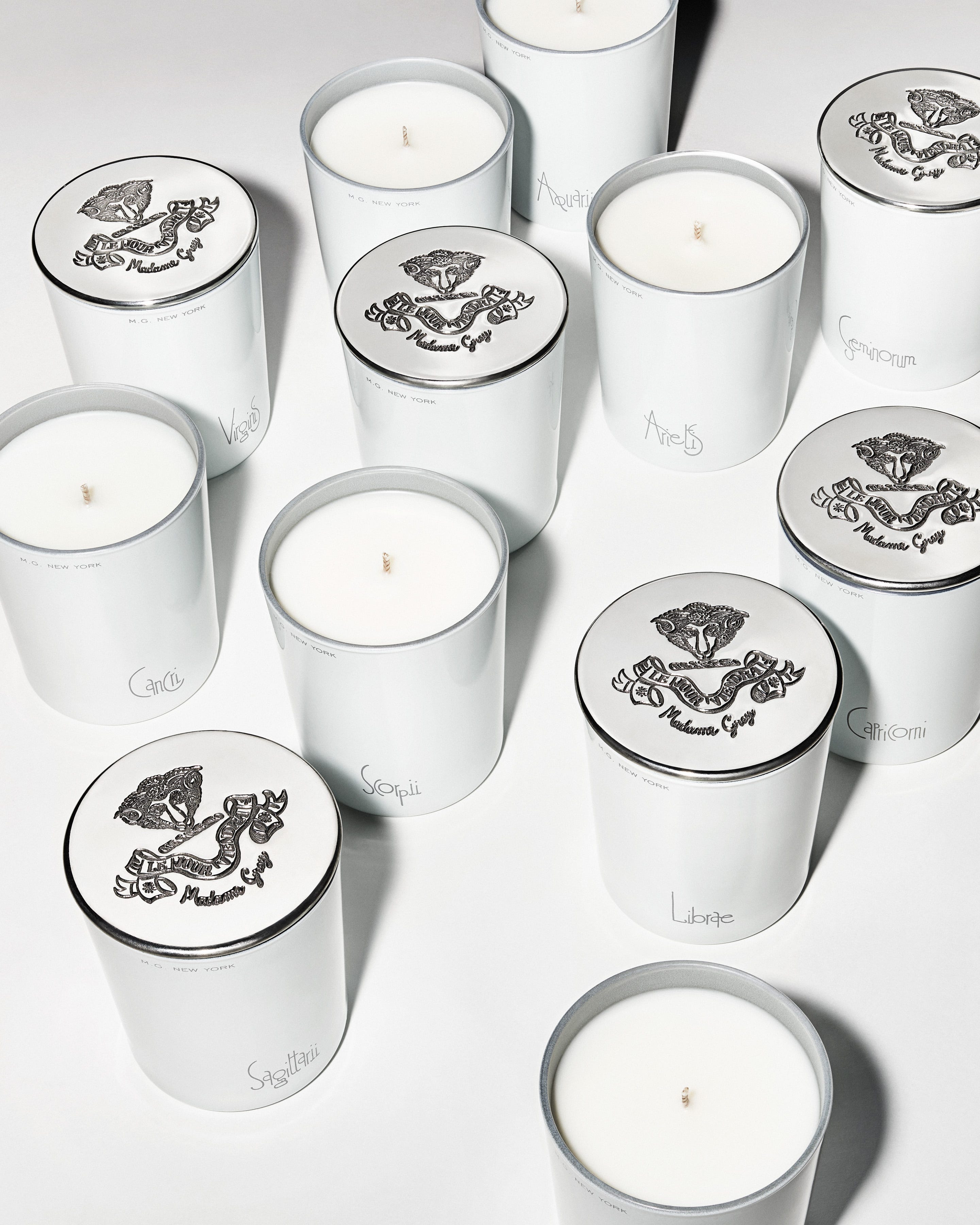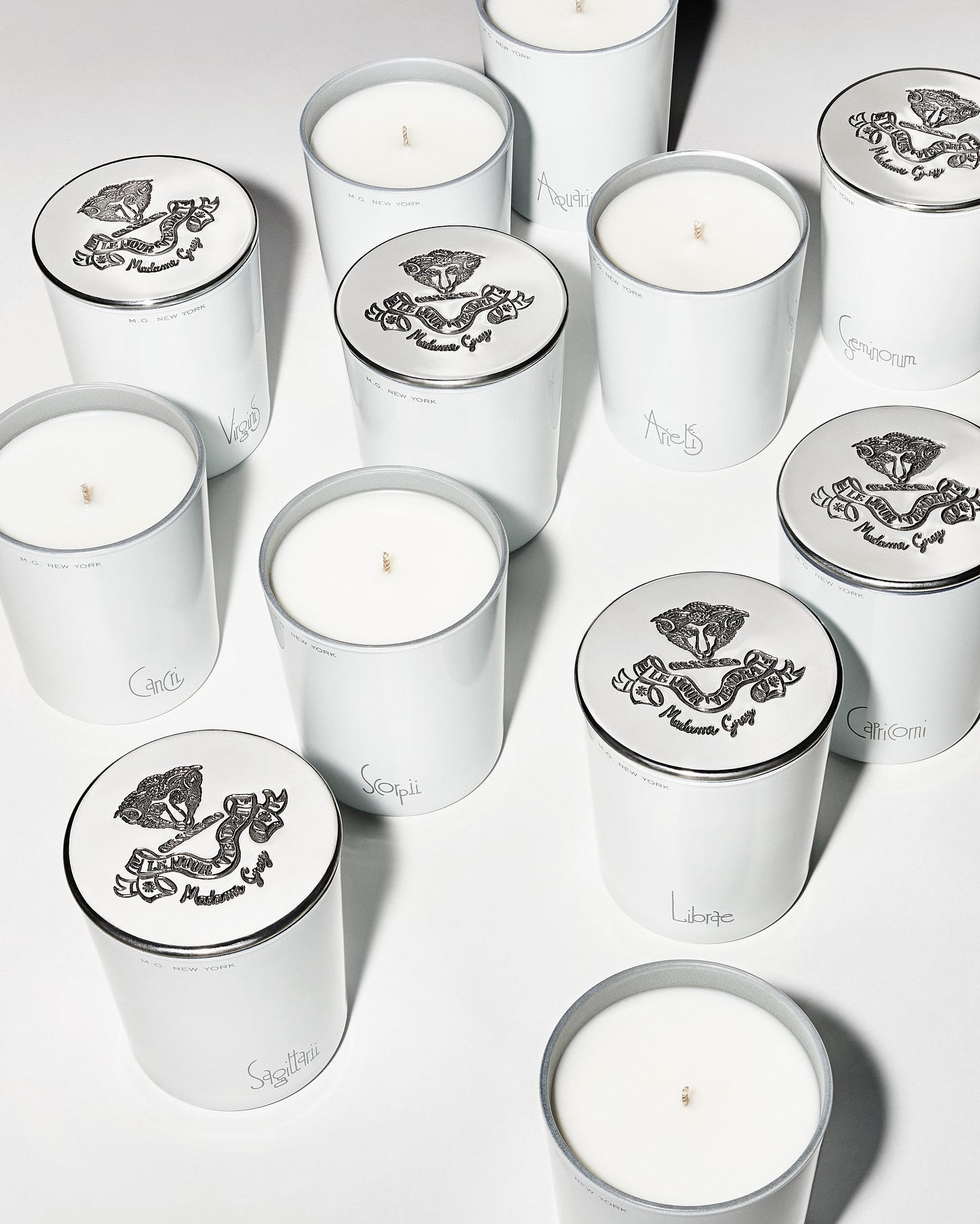 HOLIDAY PROMO: The Daily Manifestation Ritual. sign up for The Zodiacs monthly subscription and receive the Heritage Pewter Lid, with our compliments. Burn the sign of each season and manifest its energy with us—your ritual delivered every month. Or consider gifting the chicest candle-of-the-month-club OF LITERAL ALL TIME—The Zodiacs subscription—and we will send it off with the heritage lid and a custom note on Madame Grey stationery, and gift box.